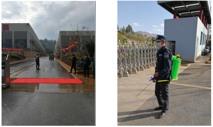2月7日:1.對設備動力管理部大門、理化室、安化卡點、集貿(mào)市場、燈光球場進行消毒;2.園區(qū)巡查正常;3.在安寧新購置水桶后拉運消毒液600公斤;4.協(xié)助福保祥瑞公司完善復工復產(chǎn)期間的相關資料。