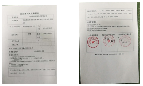 2月15日:1.盛世興安公司復工復產(chǎn)獲批;2.巡查園區(qū)企業(yè)復工復產(chǎn)后的防控落實。