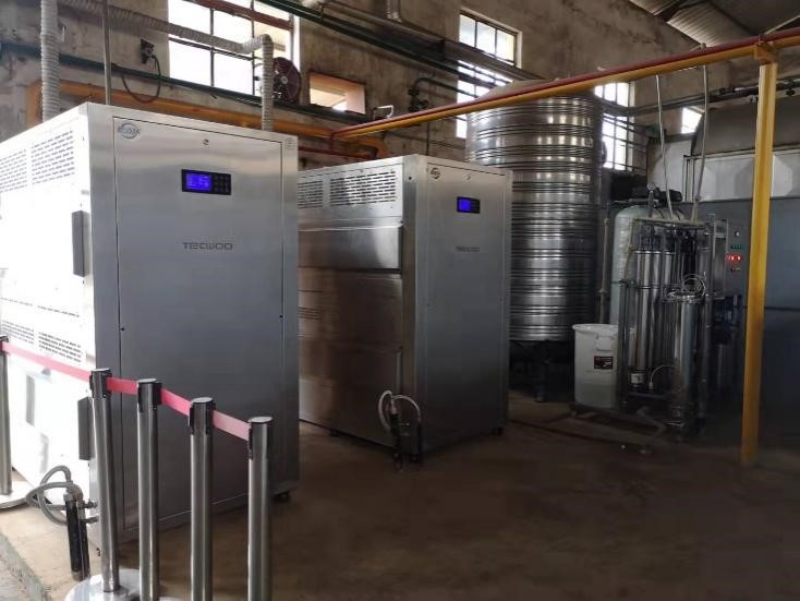 蒸汽熱源機組由2臺蒸發(fā)量為1t/h的蒸汽熱源機組成,具有自動化程度高、熱效率高、供汽速度快、設(shè)備操作簡單、占地面積較小等特點,不僅改善了現(xiàn)場作業(yè)環(huán)境,有效解決了環(huán)保、職業(yè)衛(wèi)生等問題,還實現(xiàn)了自動化、無人化生產(chǎn),滿足安全技術(shù)發(fā)展目標(biāo)要求。目前該設(shè)備已投入使用,運行期間各設(shè)備運行平穩(wěn),產(chǎn)生的蒸汽壓力約0.6Mpa,到達(dá)用汽點的蒸汽壓力約0.4 Mpa左右,能夠滿足生產(chǎn)線用汽需求。
