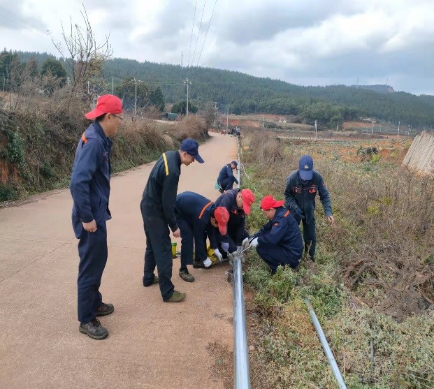 因事關(guān)村民生活保障,分公司領(lǐng)導(dǎo)幾次組織人員親臨現(xiàn)場(chǎng),與村民負(fù)責(zé)人進(jìn)行溝通協(xié)商,不斷改進(jìn)施工方案。由于擔(dān)心管道改造影響生產(chǎn)生活供水,改造方案確定后,施工必須在兩天內(nèi)完成。時(shí)間緊、任務(wù)重,在做好準(zhǔn)備工作后,玉溪分公司現(xiàn)場(chǎng)施工人員利用停產(chǎn)間隙,于1月25日清晨,迎著刺骨的寒風(fēng)開始作業(yè)。在現(xiàn)場(chǎng)負(fù)責(zé)人的指揮下,開挖過(guò)路預(yù)埋溝渠、排布、固定、組焊、回填等流程皆按預(yù)定程序有序推進(jìn)。