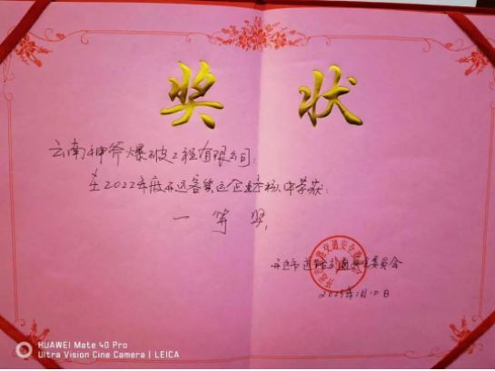 【榮譽(yù)】神斧爆破公司被開(kāi)遠(yuǎn)市交通安全委員會(huì)評(píng)為2022年度開(kāi)遠(yuǎn)客貨運(yùn)輸企業(yè)道路交通安全管理工作一等獎(jiǎng)