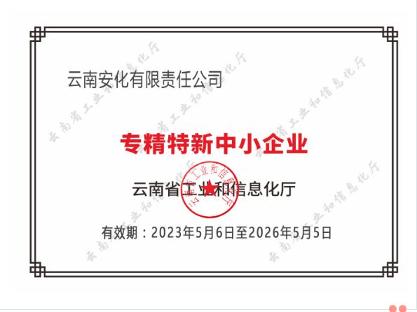 【新聞】云南安化有限責(zé)任公司通過云南省專精特新中小企業(yè)認(rèn)定