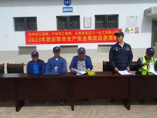 近日,云南安化五八一公司與紅河州工信局、個(gè)舊市工信局共同開展政企聯(lián)合生產(chǎn)安全事故應(yīng)急演練,紅河州工信局處級(jí)調(diào)研員漆建平、個(gè)舊市工信局等相關(guān)領(lǐng)導(dǎo)到場(chǎng)指導(dǎo)。