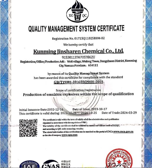 2023年昆明金沙人化工有限責(zé)任公司因外部因素導(dǎo)致全面停工停產(chǎn),公司質(zhì)量管理體系認(rèn)證工作中斷。
